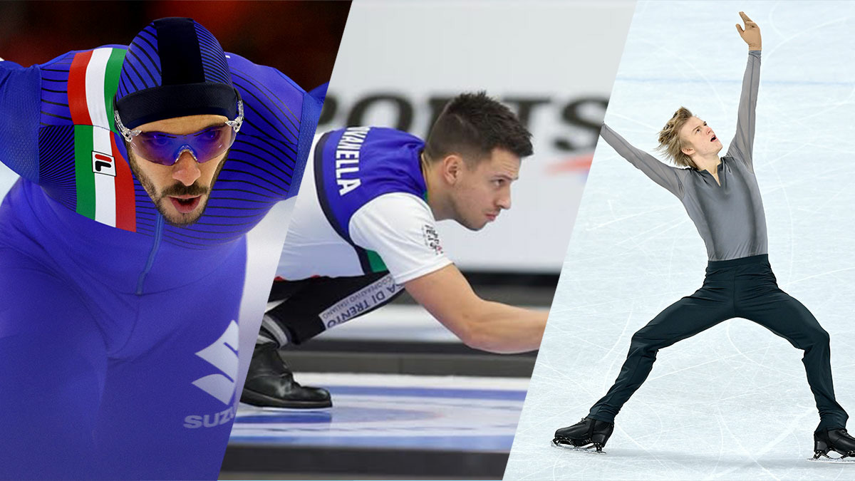 con i pattinatori sul ghiaccio Davide Ghiotto e Daniel Grassl e il curler Mattia Giovanella
