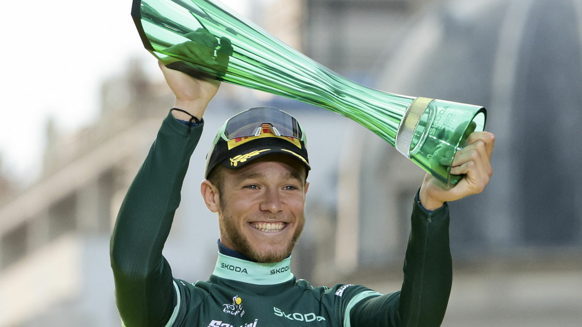 Con i vincitori della maglia verde al Tour de France Jonathan Milan e Alessandro Petacchi e, in collegamento, Franco Bitossi