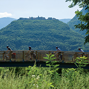 Con i suoi 80 km la pista ciclabile dell'Adige collega la Provincia di Bolzano con quella di Verona, attraversando tutto il Trentino da nord a sud e costeggiando la città di Trento. Lungo la pista ciclabile ci sono diverse possibilità per raggiungere in bicicletta il centro storico in pochi minuti.
